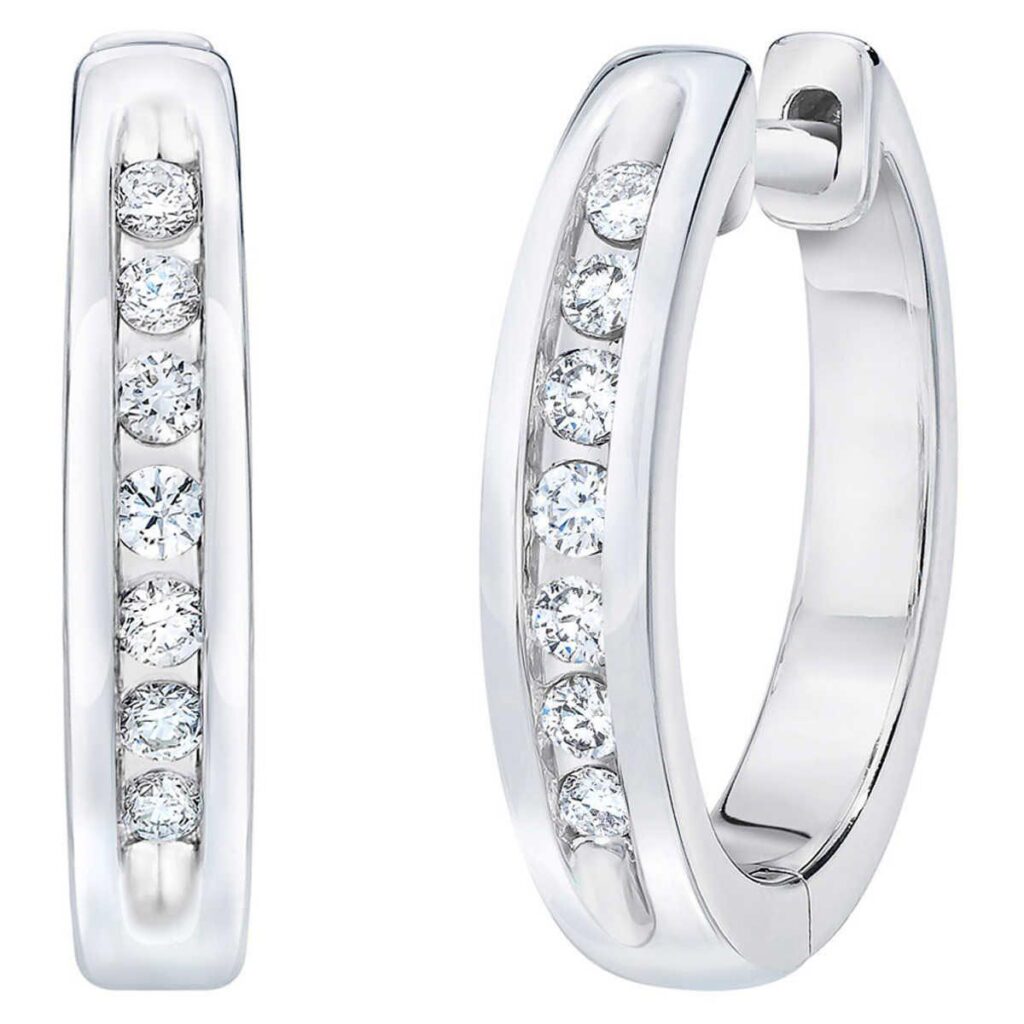 0.12ctw Round Brilliant Cut Diamond Hoop Earrings,14ct White Gold