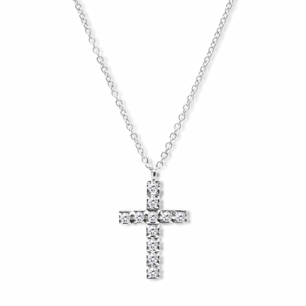 0.16ctw Round Brilliant Cut Diamond Cross Pendant, 18ct White Gold