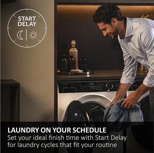 Smart washing machineManage your laundry using your smartphone with the Haier I-Pro Series 5 HW100-B14959U1 WiFi-enabled 10 kg 1400 rpm Washing Machine.Simply download the Haier hOn app and choose between 60 specialised cycles, monitor efficiency, or start your laundry according to the weather.Use the Washing lens to create a virtual invertory of your clothes, to provide each item with the best treatment.Efficient washingWant to save some time and money With the i-Time you can make any program shorter or longer. It automatically weighs each load of washing and customises the time and water amount to suit each wash.And with the delay start you can set up the washing machine for the most convenient time for you.Antibacterial treatmentYou’ll get a more hygienic wash thanks to the Antibacterial treatment. It will protect your washing machine from the bacteria and mould.It also has an internal light, making it easier to look inside the drum for a missing sock. Plus, the wide door opening will make loading and unloading of large items simple.