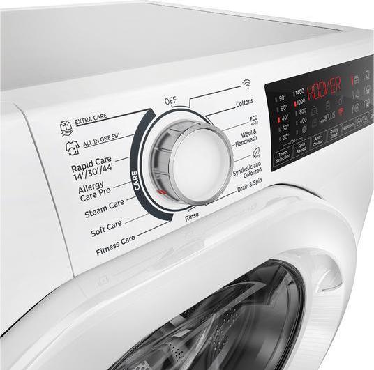 Choosing the right settings for your clothes can be tricky. This Hoover H-Wash 350’s KG Mode Plus adjusts the cycle time, water, and energy use based on the load size, so your clothes receive the best treatment. If you’re struggling with allergens, use the Allergy Care Pro mode. It uses a rinse cycle and steam to remove up to 99.9% of germs and nasties. You can even use the hOn app with your washing machine, which gives you access to over 60 dedicated cycles and sends notifications straight to your phone. Just connect it using WiFi and you’re good to go. Good to know – Stay in style for longer and keep your clothes looking like new with the 9 care cycles – With a 10 kg capacity, there’s plenty of room to throw in a big family load – If you’re in a rush, the rapid cycles let you wash your clothes in a fraction of a time of full cycle – Start a wash at a time that works for you with the 24 hour Delay Start timer
