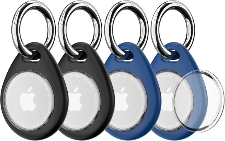 4-Pack Airtag Holder with Keyring – Shockproof, Anti-Scratch TPU Protective Case with Transparent Front Cover and Keychain, Case for Luggage, Pet Collar, Dogs – Black and Blue