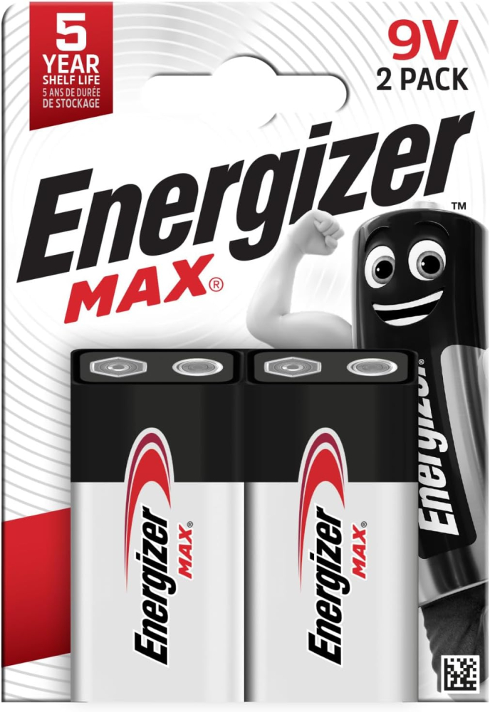 Energizer Max – 9V Battery (2 Pack) – Nine Volt Alkaline Block Batteries – Reliable Power for Fire Alarms, Smoke Dectors, Radios, Toys – 100% Recyclable Plastic Free Packaging – 5 Year Shelf Life