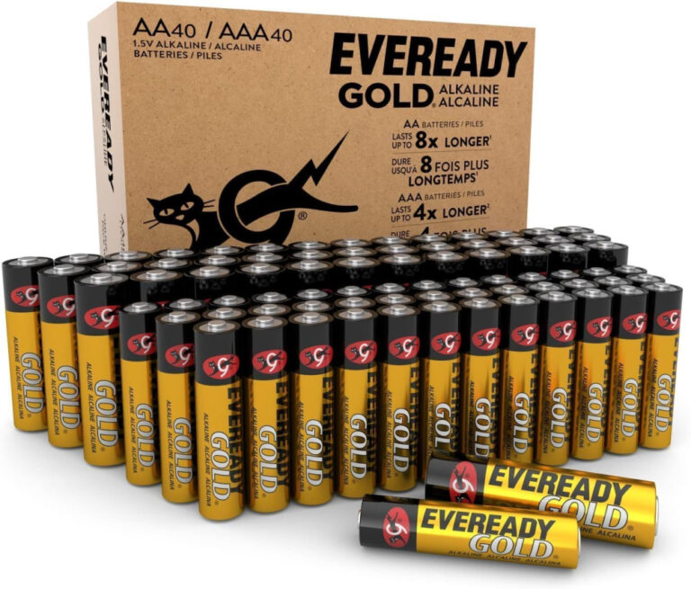 Eveready Gold by Energizer – AA + AAA Battery (80 Combo Pack) – Double & Triple A Batteries – 1.5V Alkaline – Reliable Power – 0% Plastic Packaging – 10 Year Shelf Life [Think Assemble Exclusive]
