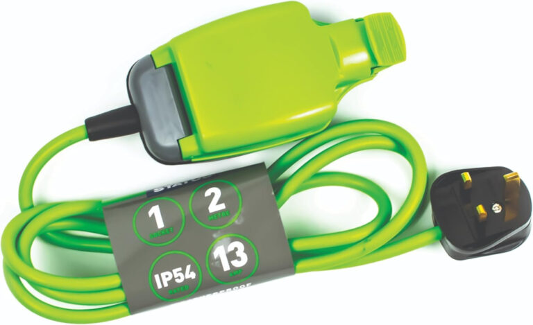 STATUS 1 Socket Extension Lead, 2m, Green, Outdoor Extension Cable, Waterproof, IP54 Rated, 13 Amp Plug, Heavy Duty Socket, Ideal for Garden Power Tools, DIY Use (1W2M13AIP54S6)