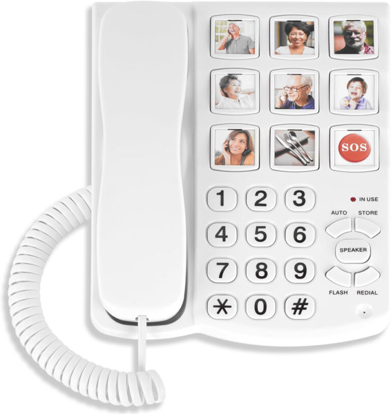 Big Button Phone for Seniors, Uvital Senior Landline Phones for Elderly with 10 One-Touch Dialing Big Buttons, Corded Landline Telephone with SOS Emergency Button, Replaceable Photo, Adjustable Volume