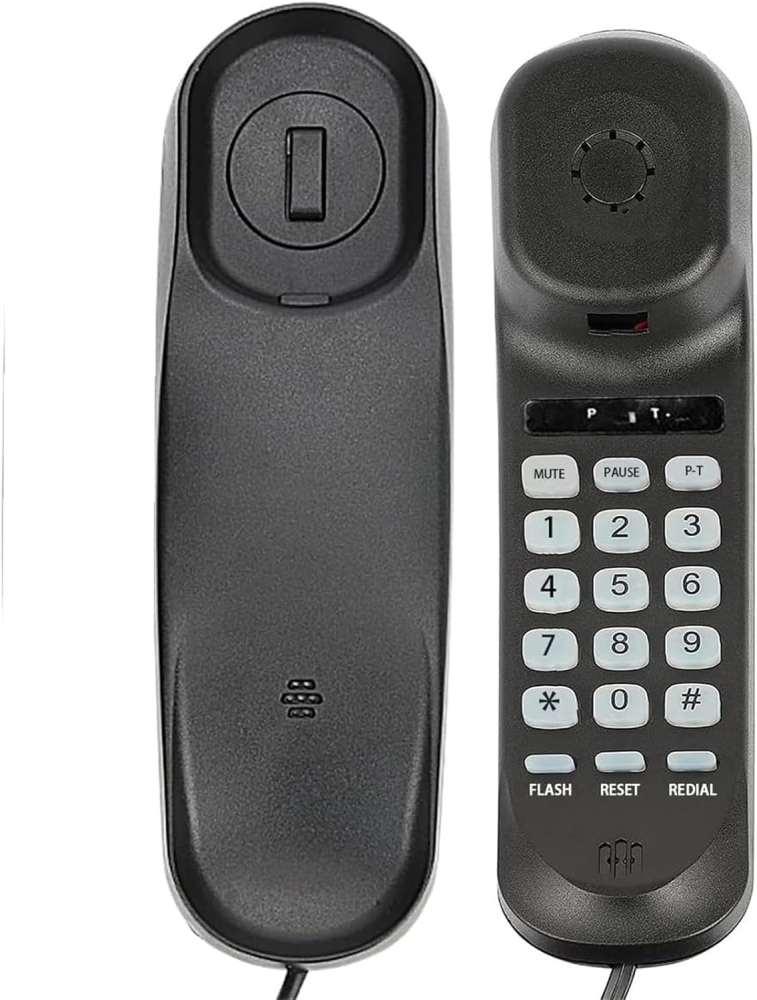 Corded House Phones Landline, Wall Mountable Or Desk Landline Telephone, Dial Pad on Base unit Home Phone, Landline Phones Last Number Redial, Pause, Flash for Office, Hotel, Home, Bathroom -Black