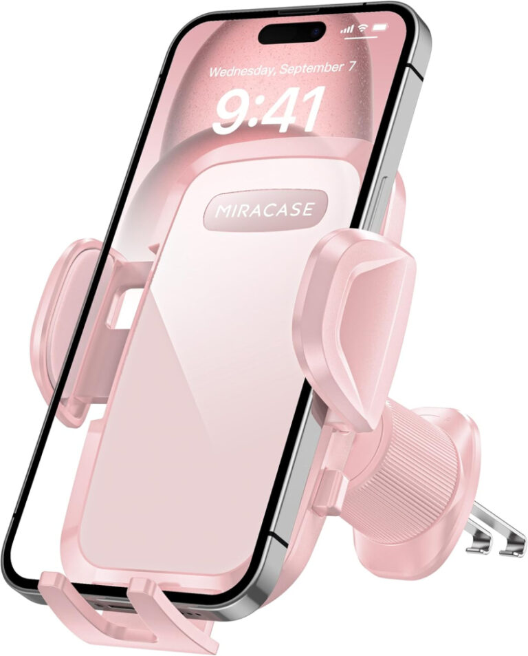 Miracase 2025 Car Phone Holder, Stable Double Steel-Hook Air Vent Car Phone Mount Cradle 360°Rotation, One Button Release Mobile Phone Holder for iPhone, Galaxy, All 4.0”-7” Smartphones