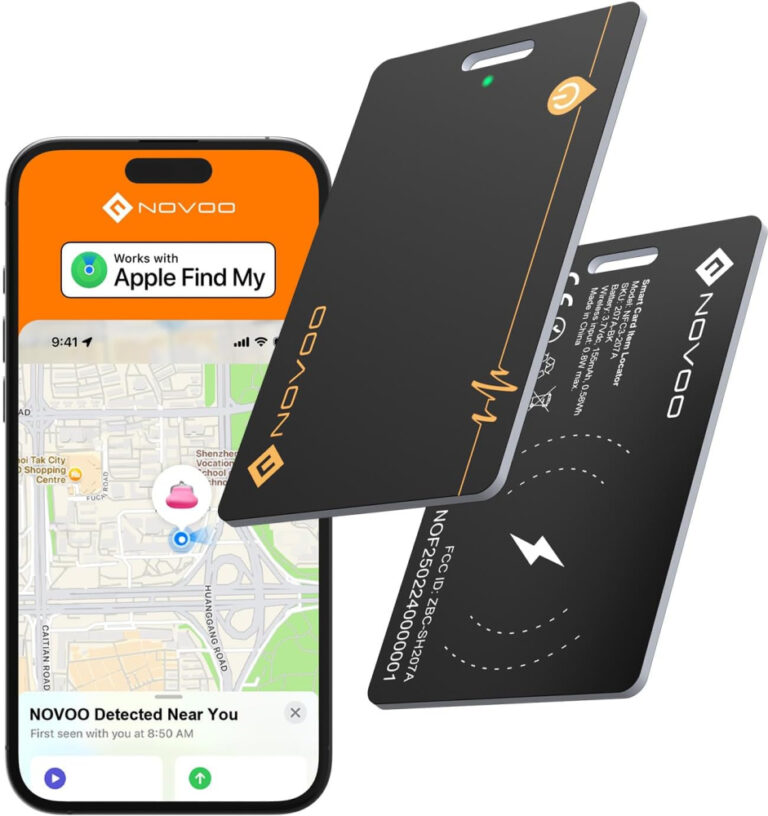 NOVOO Wallet Tracker Card, Rechargeable Wallet Finder (Wireless Charging), Bluetooth Tracking Card – 1.9mm Thin, IP68 Waterproof(Only IOS, Apple Find My) Anti-loss GPS Air Tag for Passports, Luggage