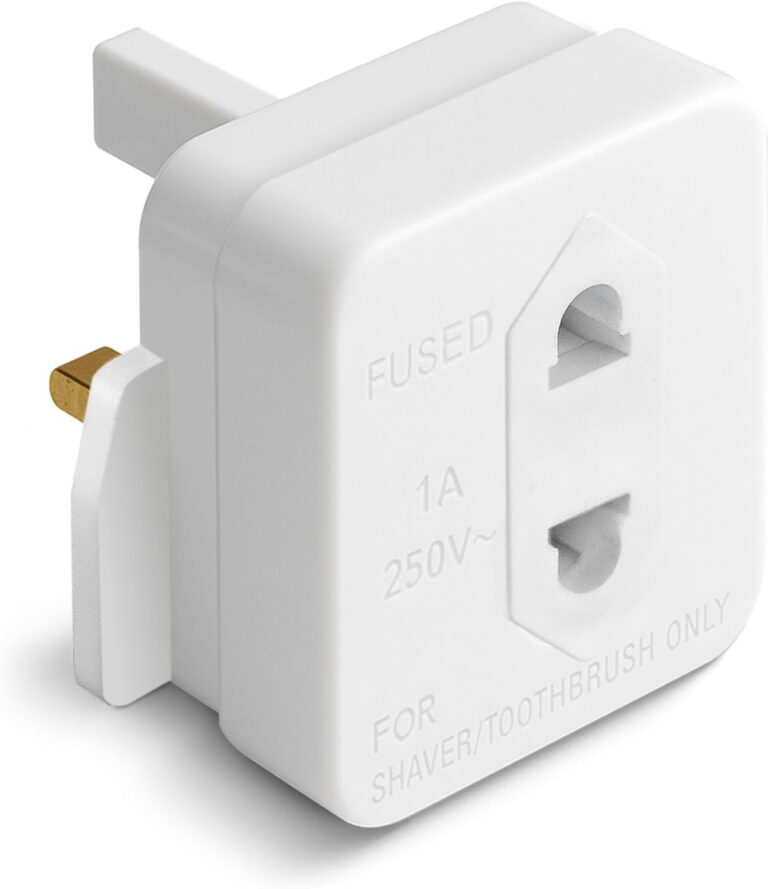 Desiretech – UK Shaver Adaptor Plug – Fused 1A 250V 2-Pin to 3-Pin Converter – CE Certified Plug for Electric Shaver & Toothbrush – Compact, Heat-Resistant, Safe UK Bathroom Socket Adaptor – White