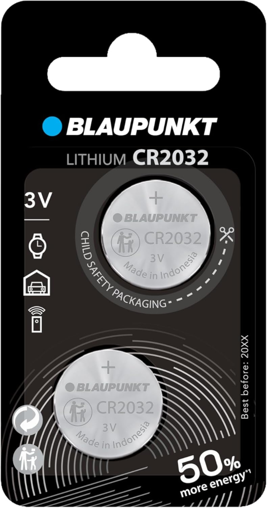 BLAUPUNKT CR2032 coin lithium batteries, 3V, pack of 2, best for AirTag, car keys, watches and heart rate monitors