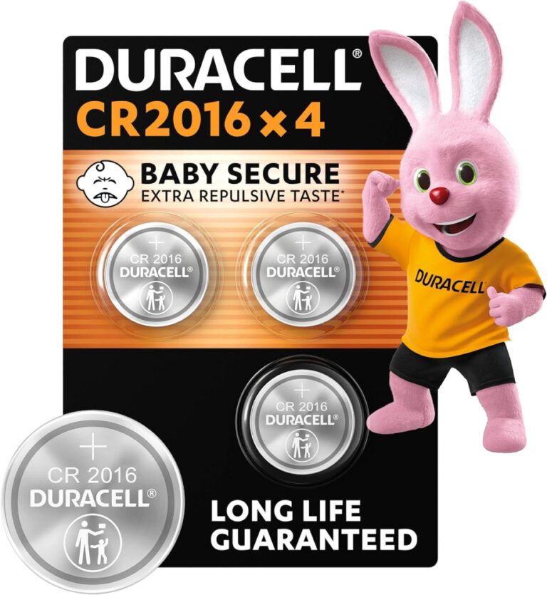 DURACELL 2025 Lithium Coin Batteries 3V (4 Pack) – Up to 70% Extra Life – Baby Secure Technology – For Use in Key Fobs, Fitness Watches and 3D Glasses – Baby Secure Packaging