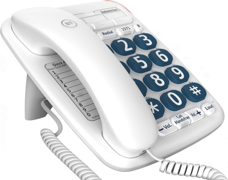 Benross 44580 Jumbo Big Button Home Landline Telephone for Elderly and Disabled/White/Hands Free Function/Adjustable Volume/Number Memory and Redial Function/Desk or Wall Mountable