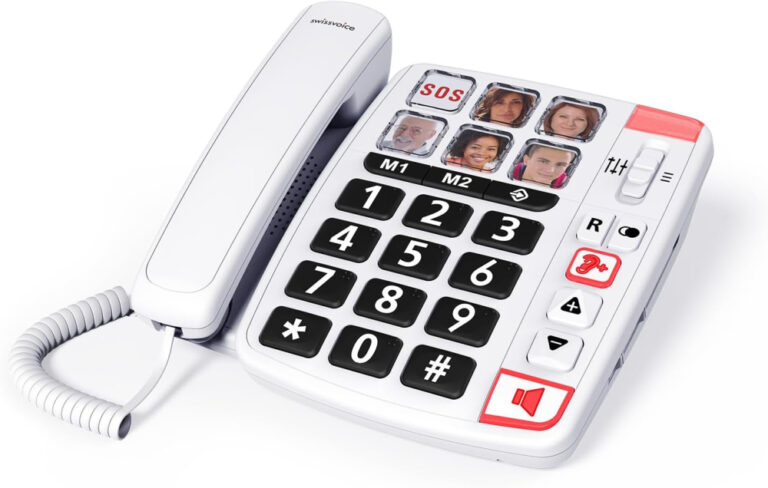 SWISSVOICE – Xtra 1110 – Corded Telephone – Large Keys – 6 Memory Keys With Photo – Extra Loud Ringtones – Illuminated Ringer Indicator – Audio Boost – Hearing Aid Compatible – White