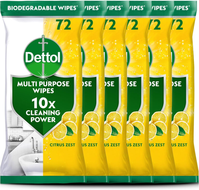 Dettol Antibacterial Multipurpose Cleaning Wipes, Citrus Zest, 70 pack (6 x 72, Total 432 Wipes) Disinfectant, Biodegradable, 10x Cleaning power vs Water alone, Kills 99.9 Percent of Germs