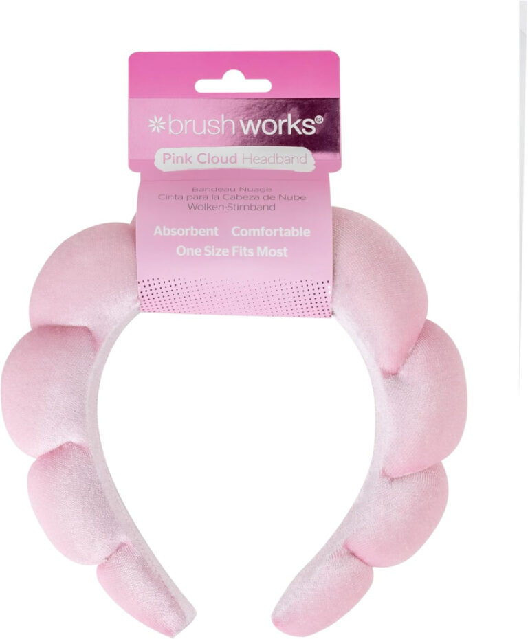 Brushworks Pink Cloud Beauty Headband – Ultra-Soft, Puffy Terry Cloth Headband for Skincare, Makeup & Face Washing, Comfortable, Non-Slip Design for Women, Girls