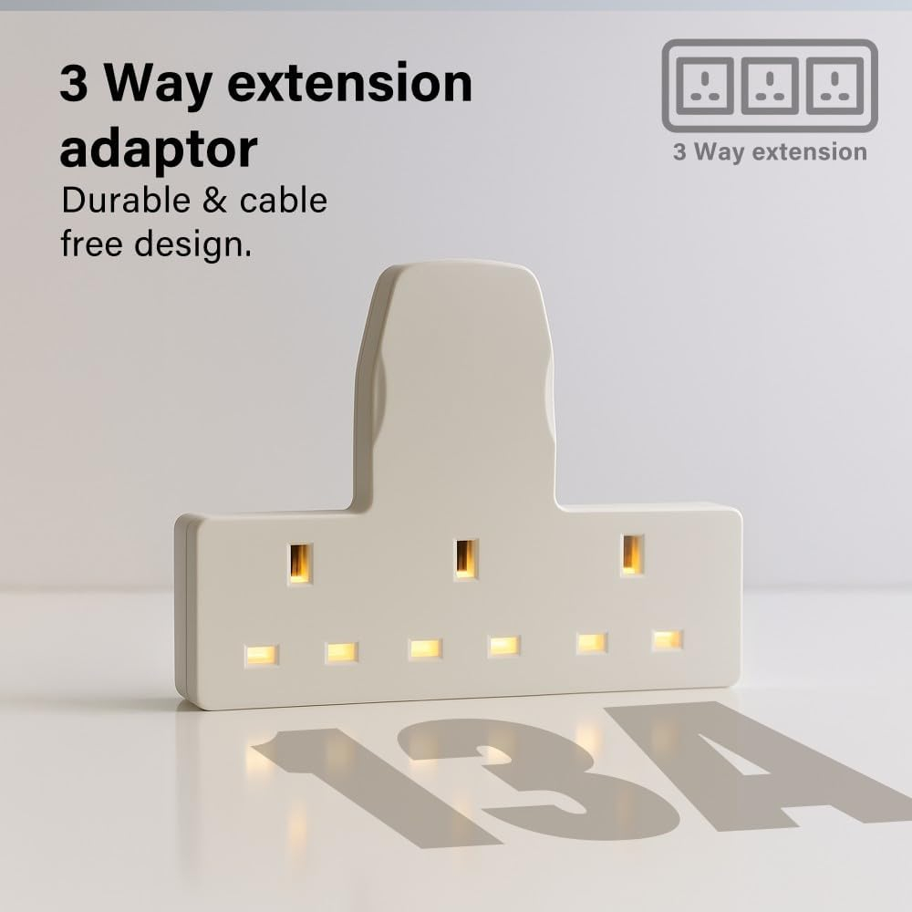 - 3-in-1 Power Expansion: Converts a single UK wall outlet into three 13A 3-pin sockets.