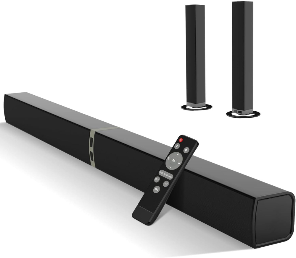 • Detachable 2-in-1 Design: Versatile 32-inch soundbar can be used as a single unit or split into two sleek tower speakers for flexible placement and enhanced stereo separation.