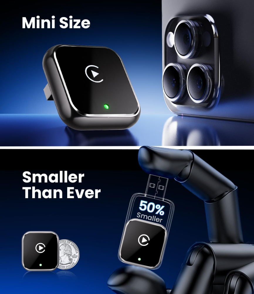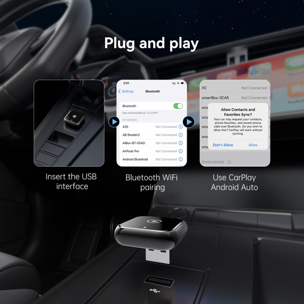 2025 UPGRADE: Instantly Convert Your Wired Car Play to Wireless! Introducing the revolutionary 2 in 1 Wireless Adapter for Apple CarPlay and Android Auto. This miniature, plug-and-play OTA dongle is engineered for speed, convenience, and unparalleled stability, eliminating the need for frustrating cables forever. Experience lightning-fast connectivity with cutting-edge Bluetooth 5.3 and WiFi 6 technology, ensuring zero lag, 5x quicker response times, and 100% original sound and picture quality. Designed for seamless integration, this universal adapter supports iPhone (iOS 10+) and Android (11+) devices across 927+ vehicle models (2016+), automatically reconnecting every time you start your car. Upgrade to the future of driving with a discreet, stealth-mini design featuring a matte metal finish that complements any car interior.