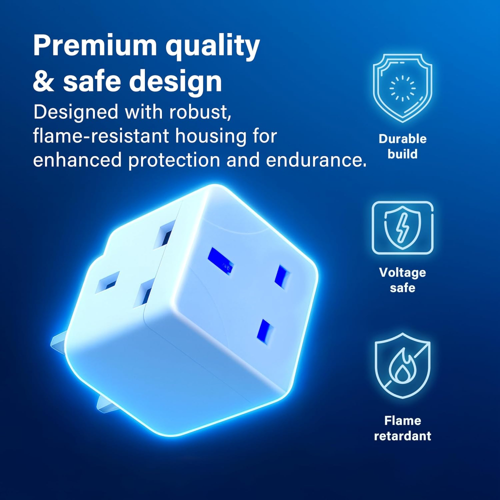 This 2 way UK plug adapter is very useful and works well in my home. It allows me to use two devices at the same time without any problem. The build quality feels strong and safe, and the 13A fused design gives me confidence when using it with kitchen and office appliances. The size is compact, so it does not block other sockets and is easy to carry when traveling. I like that it fits firmly into the wall socket and does not feel loose. It is very convenient for daily use, especially when there are limited plug points