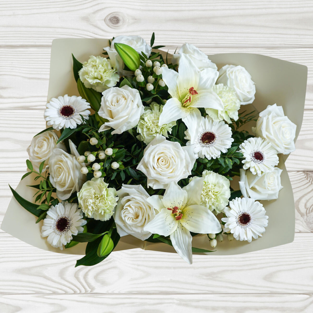 Instantly brighten someone’s day or elevate your own home decor with this breathtaking 28 Stem White Mixed Flower Bouquet. Expertly curated for maximum visual impact, this stunning arrangement features a harmonious blend of pristine white blooms and lush greenery, symbolizing purity, elegance, and heartfelt sentiment. Ideal for anniversaries, birthdays, sympathy gestures, or simply as a ‘just because’ surprise, this luxurious floral arrangement comes complete with a complimentary, personalized greetings card, making your gift truly unforgettable. Our professional florists ensure every stem is fresh, vibrant, and ready to be displayed, offering a high-impact, low-effort way to deliver beauty and joy.
