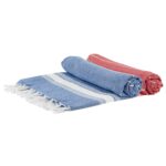 2x Turkish Cotton Bath Towels Lightweight Beach Peshtemal 170 x 90cm Navy/Red