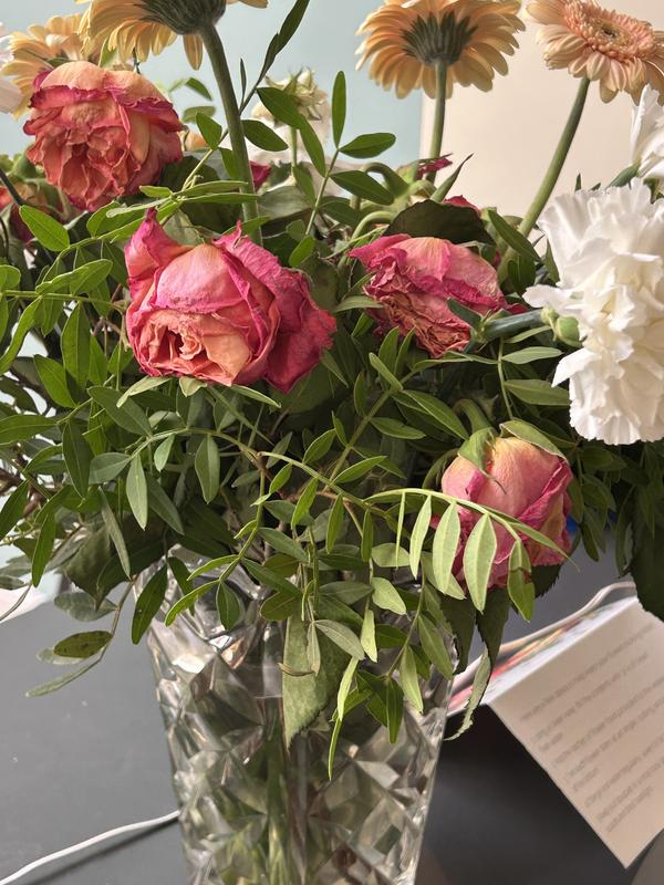 Bought these flowers for my wife for our 30th wedding anniversary. They weren’t in the best of shape on arrival – a bit squashed – but not terrible. Followed the instructions to the letter in terms of water / feeding etc but sadly they were all dead within 5 days. Admittedly it was during the recent heatwave but I expected them to last a bit longer than that for the price paid. Not sure I’d buy them again.
