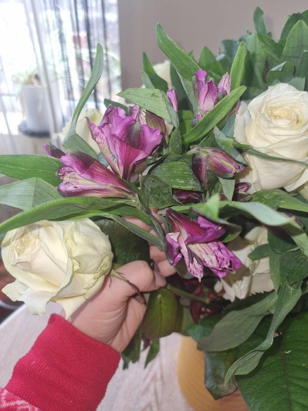 Although well packed, as soon as I removed the cellophane a rose head fell off of the stem. The Alstromeria varied from just acceptable to wilting / broken at the head-stem joint.