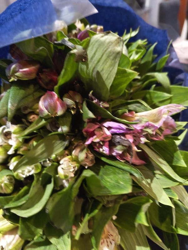 Recently bought two alstroemeria flower bouquets a week apart. Both arrived promptly with many stems yet to open, though one bunch deteriorated quicker than the other.