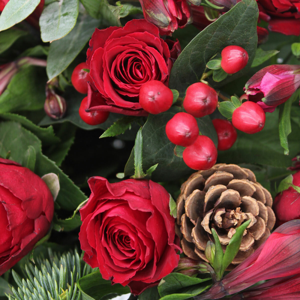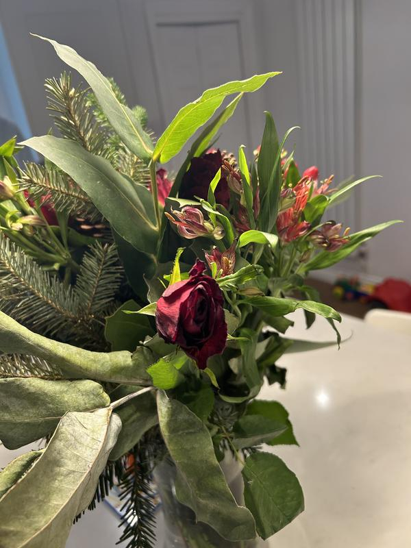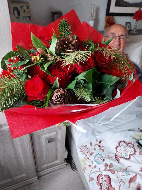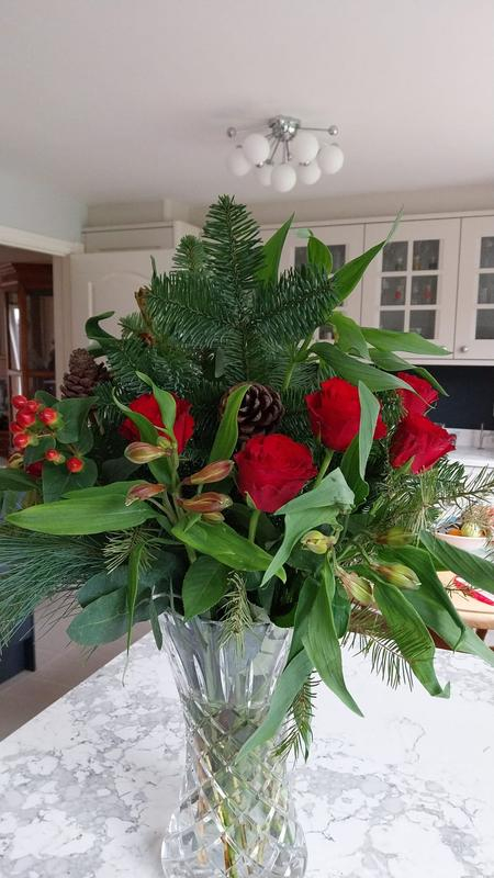 Always have to have fresh flowers and foliage at Christmas, this bouquet was outstanding, fresh and crammed full of different pines, firs and other greenery, roses were beautiful and lasted right throughout Christmas and into the New Year, hope do this bouquet every year, will even be buying some as Christmas presents, very good value for money