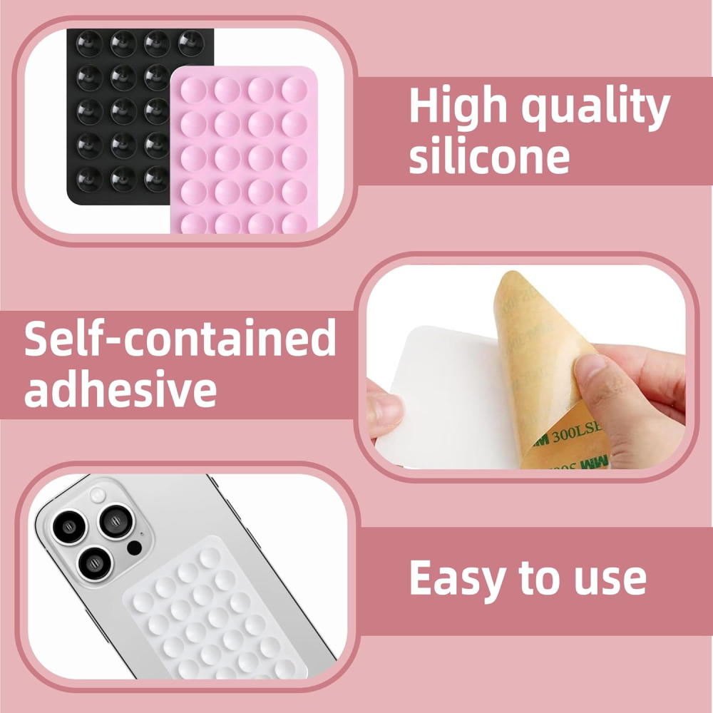 - Ultimate 4-Pack Value: Receive four durable silicone suction phone grips in a versatile color assortment: Black, White, Pink, and Light Pink.