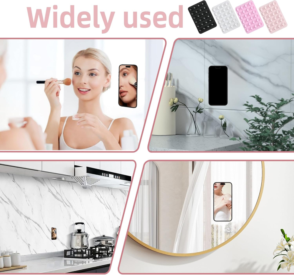 Stop juggling your smartphone while cooking, working out, or streaming! This essential 4-Pack of Silicone Suction Phone Case Mounts provides a revolutionary, sticky phone grip solution that transforms any flat surface into a secure phone holder. Engineered with a powerful array of suction cups, these multipurpose sticky phone cases adhere reliably to walls, mirrors, glass, car dashboards, and more, offering hands-free convenience at home, in the office, or on the go. This value set includes four popular colors (Black, White, Pink, Light Pink), ensuring you always have a stylish and secure phone mount available. Perfect for recording video, following recipes, video chatting, or simply keeping your device in sight and off the counter. Experience instant, reliable, and reusable suction technology—the ultimate accessory for a modern, hands-free lifestyle.