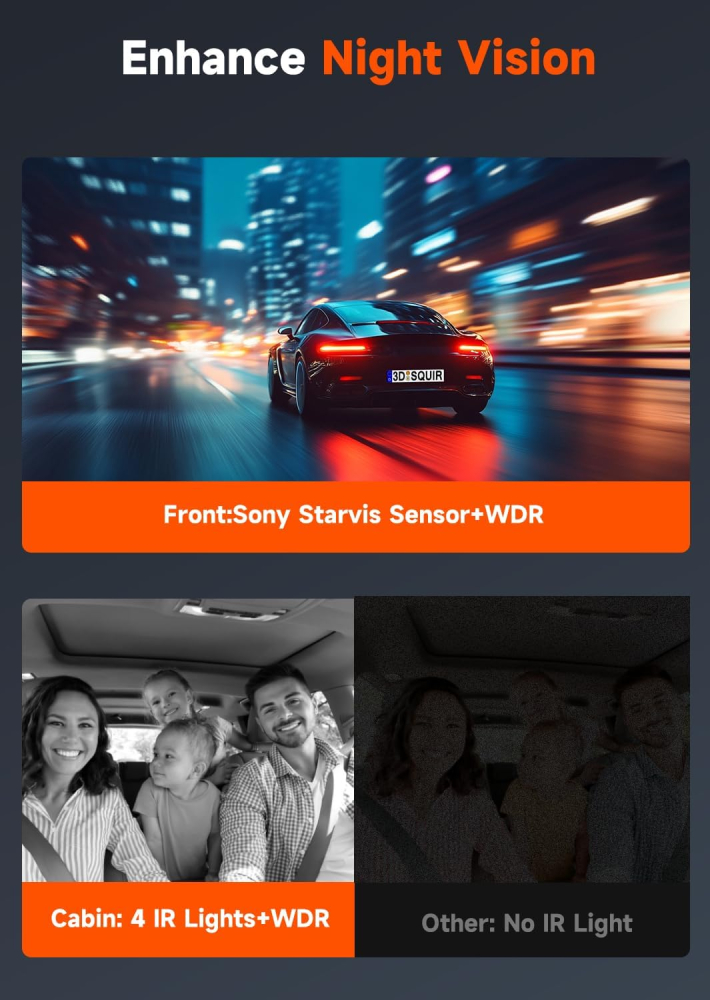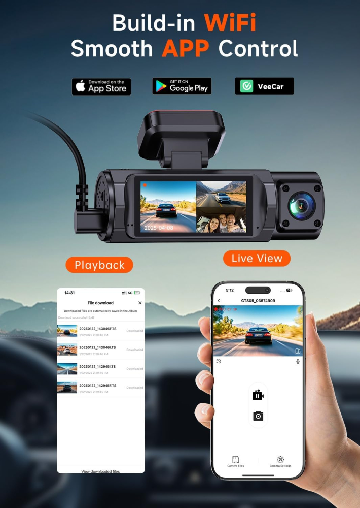 - Triple Channel 4K + 1080P Recording (Front/Inside/Rear) for comprehensive protection.