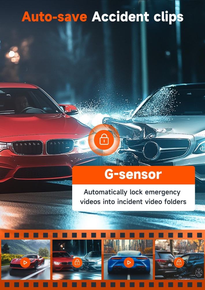 - G-Sensor & Loop Recording: Automatic loop recording manages storage efficiency, while the built-in 3-axis G-sensor instantly locks video files upon impact to secure collision evidence with GPS metadata and timestamps.