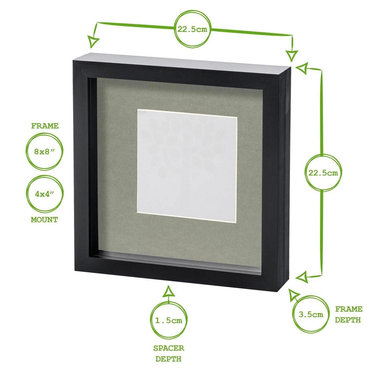 White 8″ x 8″ 3D Box Photo Frame Black 4″ x 4″ Mount Craft Shadow Picture