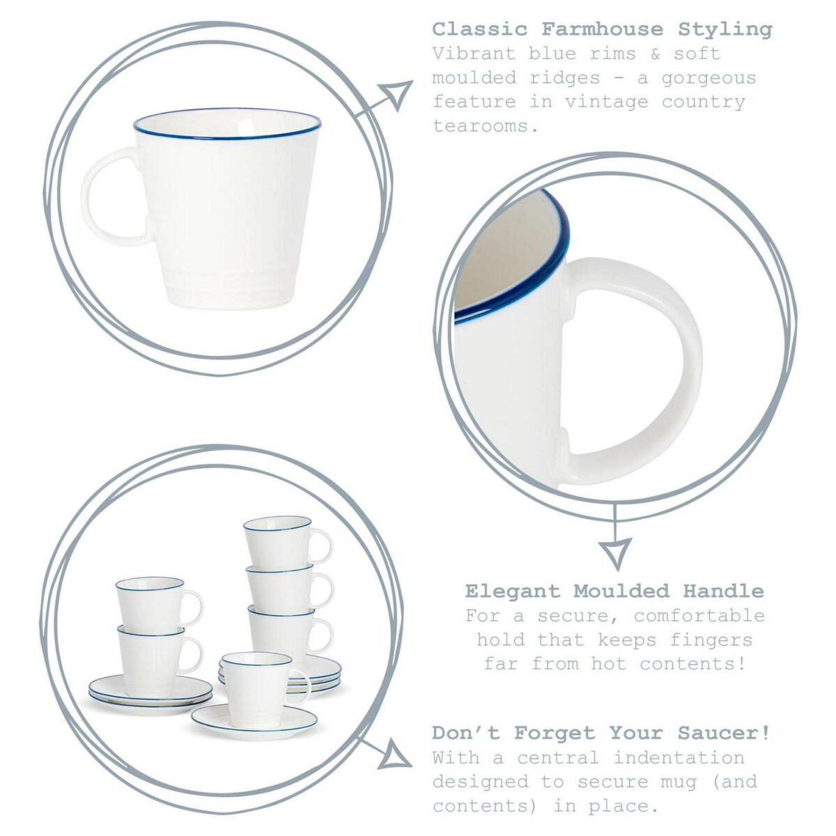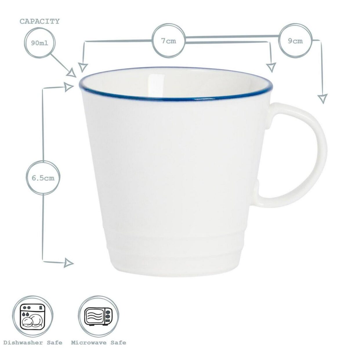 6x White Farmhouse Espresso Cups Rustic Country Cottage Tea Coffee Cups 90ml