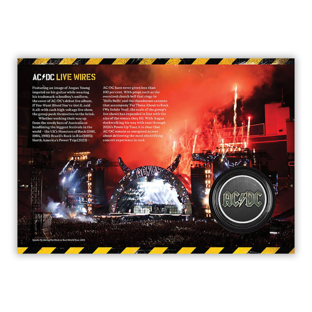 - Official Royal Mail® collectible celebrating the legendary rock band AC/DC.