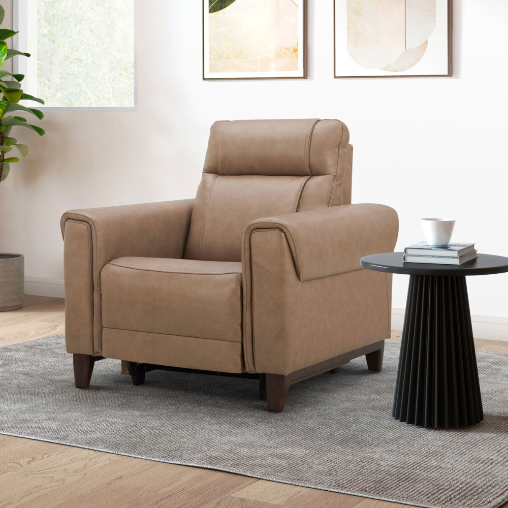 Upgrade your home sanctuary with the premium Aiden & Ivy Spencer Power Reclining Armchair. Crafted with rich, genuine brown leather, this high-end recliner offers the perfect blend of timeless style and modern, effortless functionality. Experience ultimate relaxation at the touch of a button with the smooth power reclining mechanism, designed for superior comfort and support. The durable construction and high-quality materials ensure this statement piece will be the centerpiece of your living room or home theater for years to come. Invest in luxury, comfort, and long-lasting quality with this sophisticated leather power recliner.