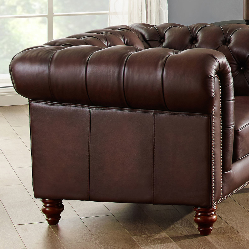 • Premium Brown Leather Upholstery for rich, durable quality that ages beautifully.
