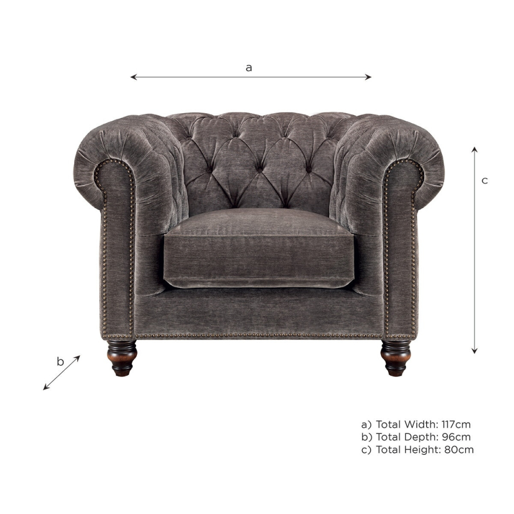 Product Overview: Luxury Allington Grey Fabric Chesterfield Armchair – Timeless Style Meets Modern Comfort