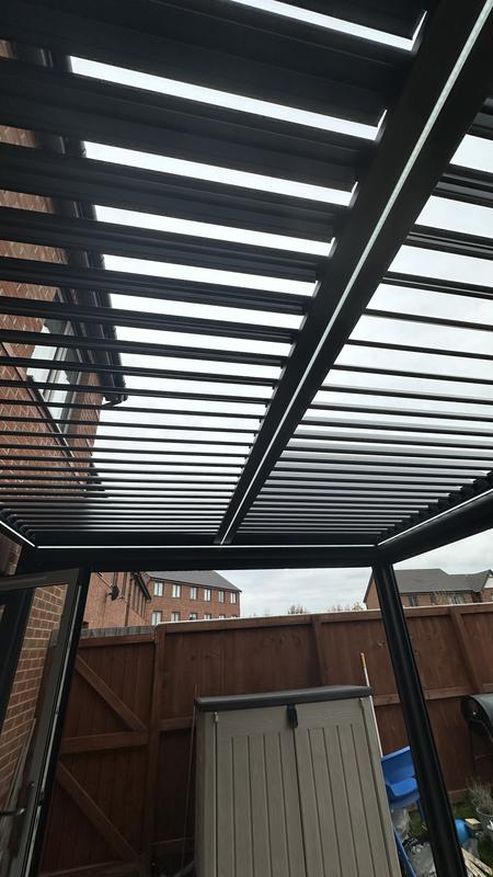 Very happy with Pergola, found using unistrut with chemical fixing best/ easiest for hard surface/ patio fixing. Has made a very positive addition to the existing seating area. roof blades very easy to adjust.