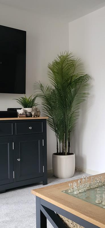 Instantly transform any indoor space into a tropical oasis with the stunning Artificial 6.5ft Palm Tree in Ribbed Planter. Perfect for homes, offices, and commercial settings, this life-like faux palm delivers maximum visual impact without the hassle of watering, pruning, or maintenance. Standing at an impressive 6.5 feet (2 meters) tall, the dense, UV-resistant fronds are meticulously crafted to replicate the natural look and feel of a live palm, bringing vibrant greenery to dimly lit areas where real plants struggle. The tree is anchored in a modern, stylish ribbed planter, ensuring immediate stability and a polished, contemporary look straight out of the box. Invest in this highly durable and realistic synthetic palm to achieve year-round, low-maintenance decoration that elevates your interior design.