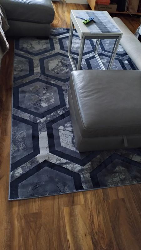 Lovely rug, a mixture of textures make this rug look different every time you look at it. There’s shade and light bounces off the metallic areas.