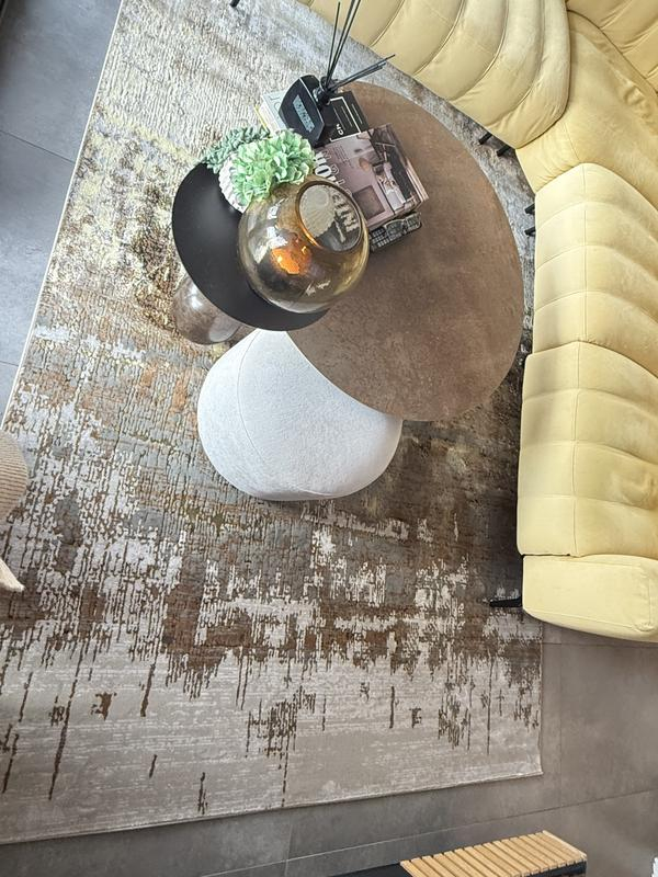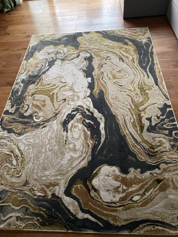 Lovely rug, a mixture of textures make this rug look different every time you look at it. There’s shade and light bounces off the metallic areas.
