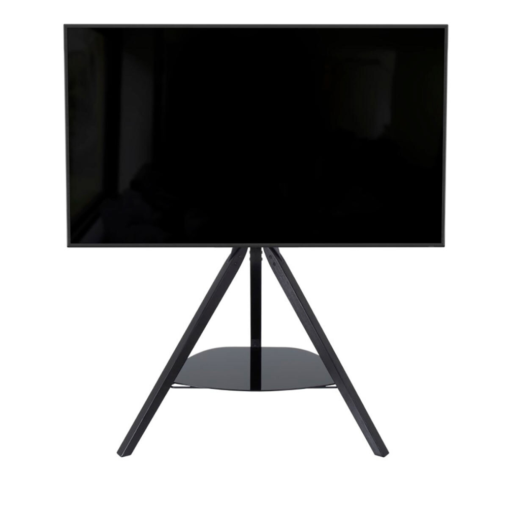 Love this TV stand stylish and fits perfectly into the corner of the room. Looks like an easel with the TV as the picture. Room on the stand underneath for the sound bar, broadband box, and a dvd player. There are clips fitted into the back leg to help hide unsightly wires, a nice change from the usual traditional TV stand.