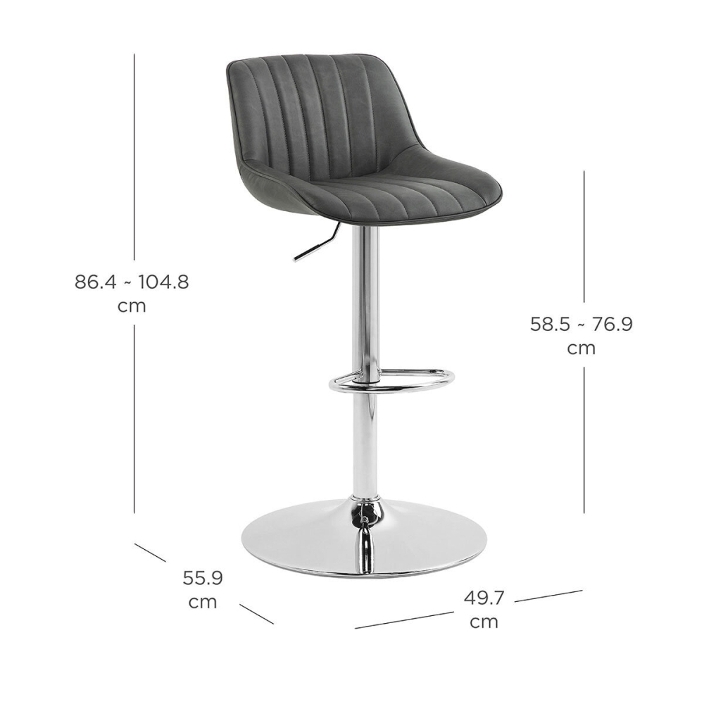Instantly modernize your kitchen island or home bar with the premium Bayside Furnishings Grey Stitched Gas Lift Bar Stool. Combining sophisticated style with superior functionality, this adjustable swivel stool features elegant grey stitching on durable upholstery, providing both comfort and striking visual appeal. The smooth, effortless gas lift mechanism allows you to perfectly customize the height, while the sturdy chrome base ensures stability and a sleek contemporary look. Designed for high traffic areas and long-lasting use, this bar stool is the ultimate seating upgrade for discerning homeowners seeking style, comfort, and precision engineering.