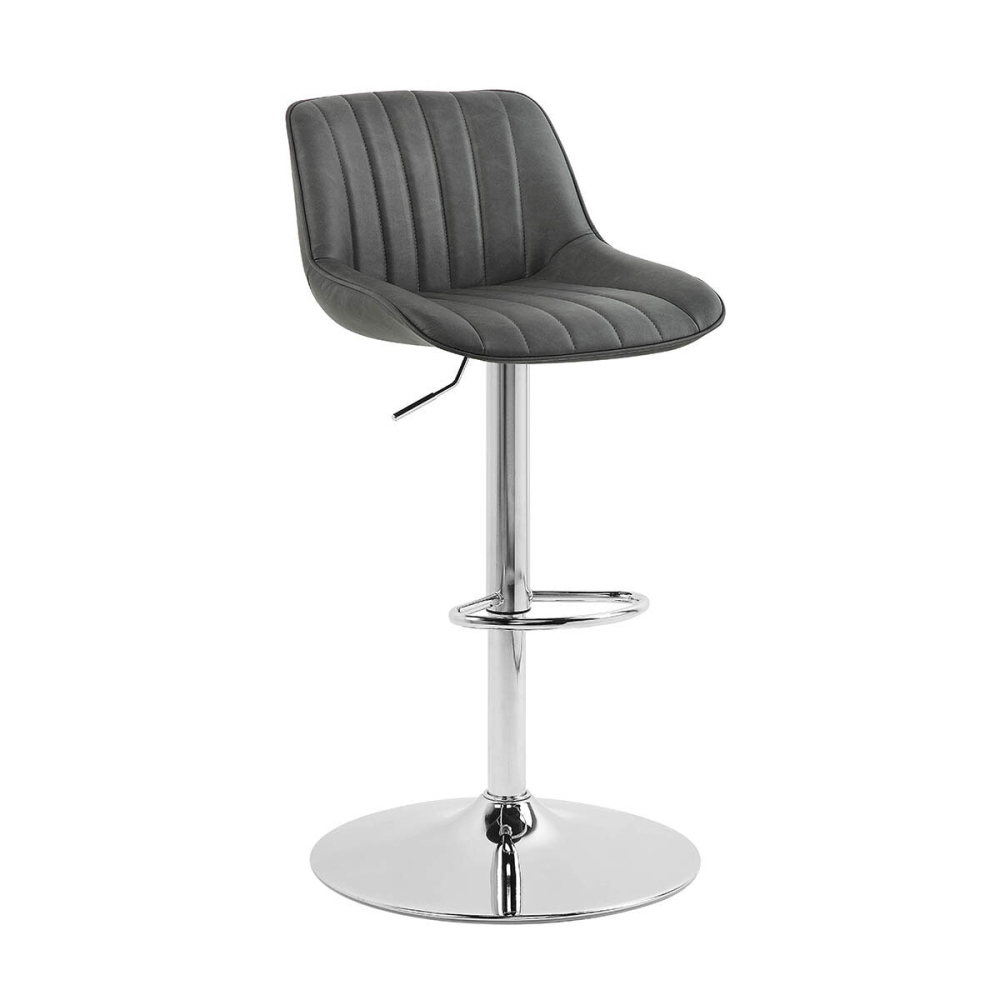 Modernize your kitchen island or home bar with the premium Bayside Furnishings Grey Stitched Gas Lift Bar Stool. This adjustable swivel stool features luxurious grey stitched upholstery and a sleek chrome base, offering sophisticated style, customizable comfort, and long-lasting durability for any contemporary space.