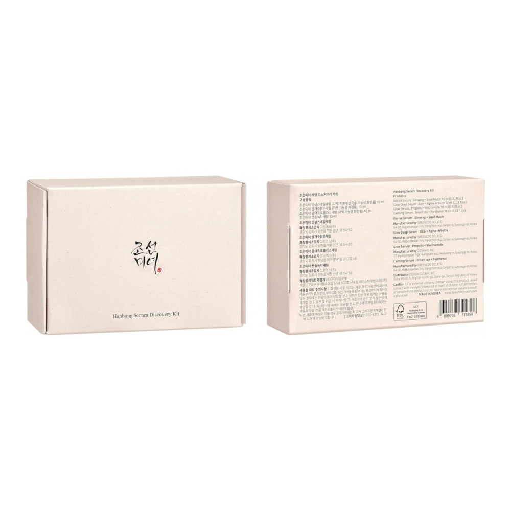 Experience the ancient wisdom of traditional Korean skincare with the Beauty of Joseon Discovery Serum Set. This exclusive 4-piece collection introduces you to four of their best-selling serums in convenient 10ml travel sizes, perfect for testing, layering, or maintaining your routine on the go. Formulated with potent Hanbang (traditional Korean herbal medicine) ingredients, this set targets key skin concerns including hydration, brightening, soothing, and anti-aging. Transform your complexion with authentic, high-quality K-beauty essentials designed to reveal a healthier, more radiant glow. Ideal for all skin types and those new to K-beauty, this set offers maximum efficacy in a compact, cruelty-free format.
