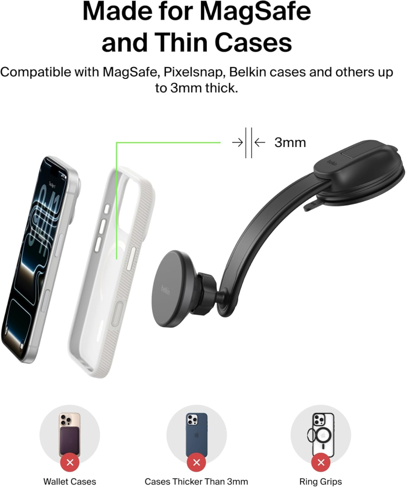 - Compatible with MagSafe-compatible cases up to 3mm thick.