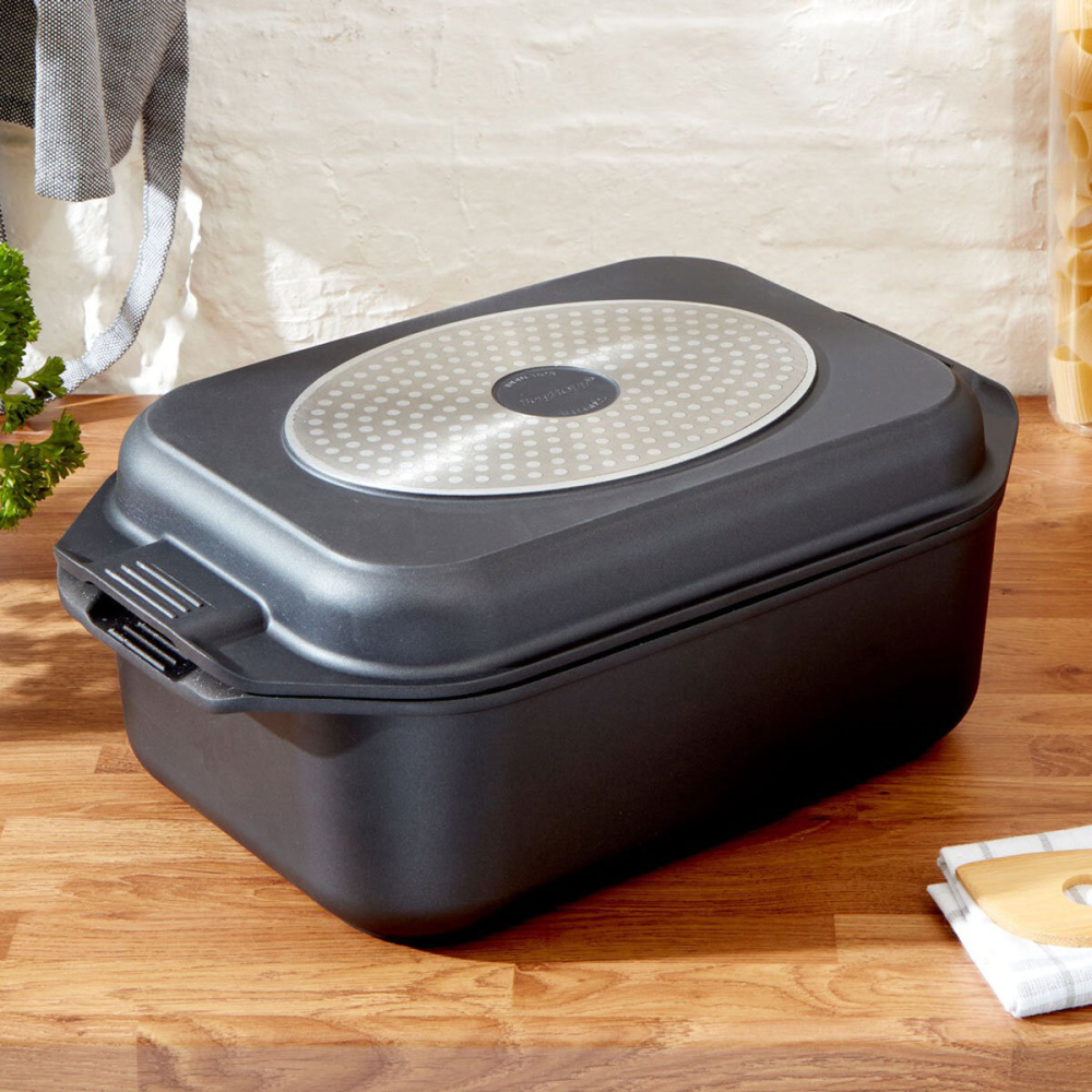 I love this new roaster, received in time for Xmas lunch, must say the turkey was so moist and beautifully cooked, I roasted quite a few joints of meat and all beautifully cooked, it’s so light to carry and such a versatile cooking dish as I’ve used both sections of the roaster