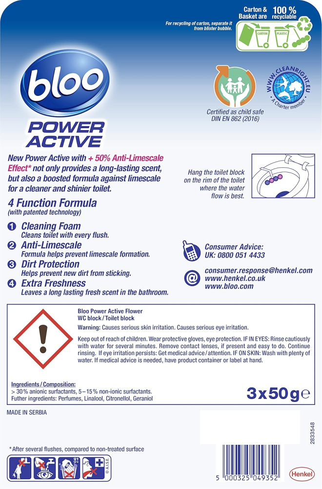 39 reviews for Bloo Power Active Toilet Rim Block Fresh Flowers, with Anti-Limescale, Cleaning Foam, Dirt Protection and Extra Freshness – Pack of 3 Rimblocks